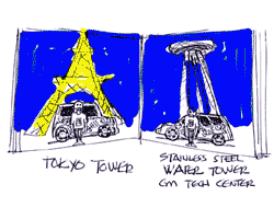 そして東京の事もよく知っています。こんなことをやろうとスケッチを送ってきました。どうすれば面白くなるか考え中です。かなり大変そう。