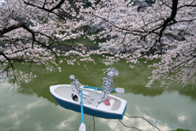 千鳥が渕の桜です。金曜日の朝7時 すでにシルバーのデジカメが三脚を据えて場所取りです。散り始め位咲いてて欲しかったのですがちょっと早かったようです。